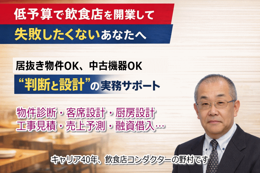 飲食店の開業・改善には、厨房、客席、内装、メニュー、設備、心理導線など複数の要素が複雑に絡み合います。